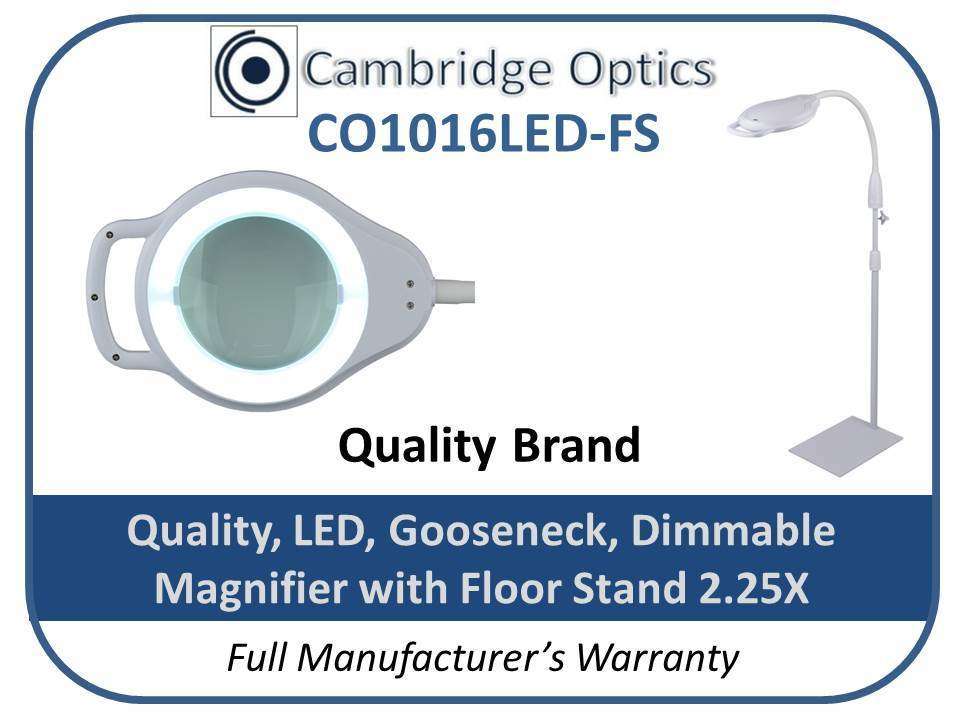 2.25X Flexible Gooseneck Dimmable LED Illuminated Magnifier, Adjustable Floor Stand. Quality Optics