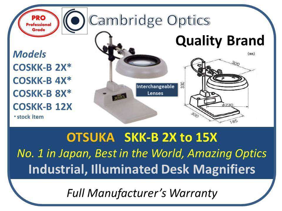 2X-15X Illuminated Desk Stand Magnifiers Industrial Grade with Interchangeable Lenses. Otsuka Brand.