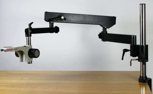 This high quality, highly stable stand that is both much lighter in weight than most other stands of this type and it leaves the bench area clear immediately under the stand.ย It is designed for looking at largeย specimens or specimens that need to moved significantly.