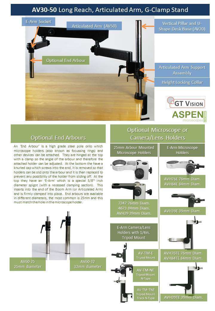 E-Arm Microscope Holders (no End Arbour required) – these give less flexibility compared to arbour mounted microscope holders: