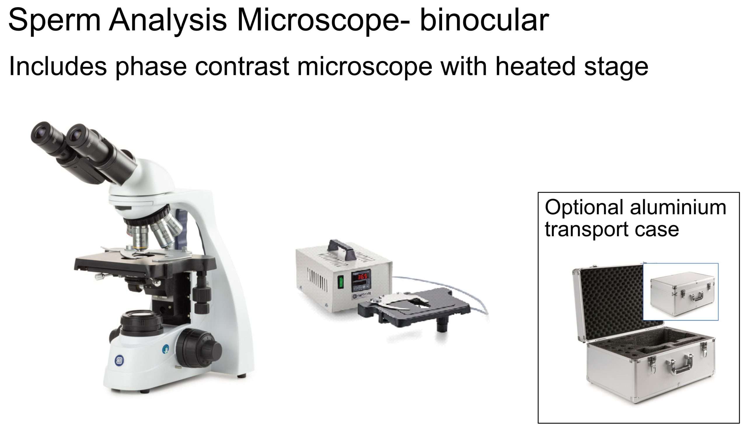 For applications such as animal sperm analysis a biological microscope with phase contrast and a heated stage is needed.