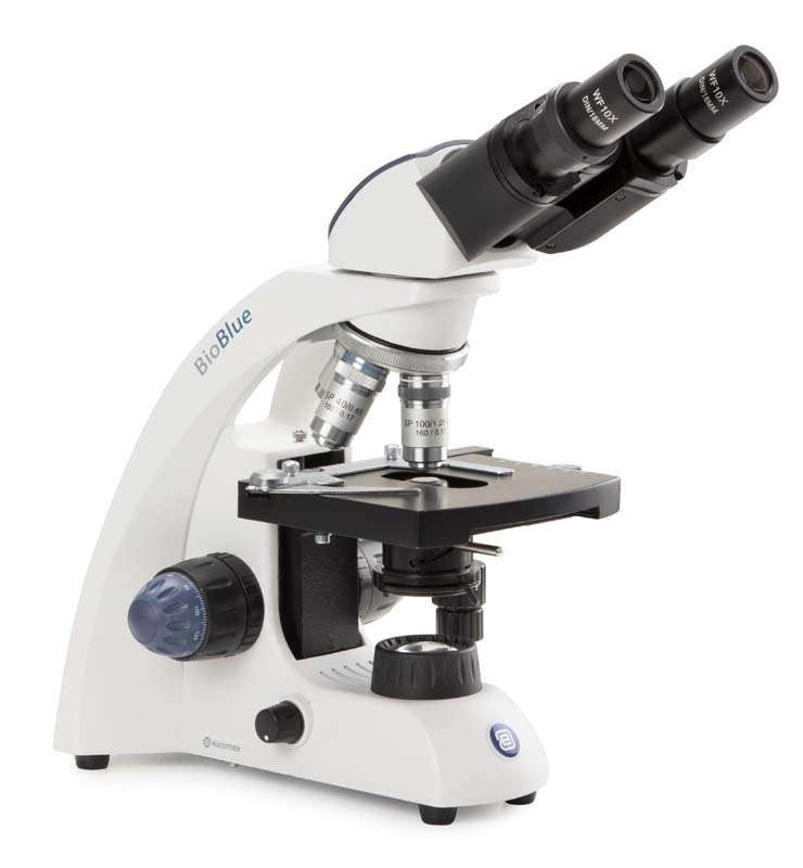 Euromex BioBlue binocular microscope 4/10/40/100x objectives, mechanical stage, NeoLED illumination