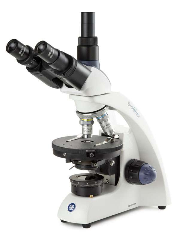 Euromex BioBlue polarising trinocular microscope with 4/10/40x objectives, LED illumination