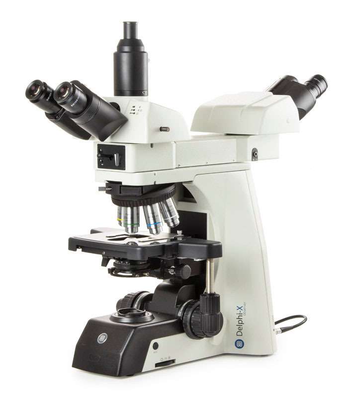 Delphi-X dual head microscope plan semi-apo 4/10/20/40/100x objectives halogen illumination