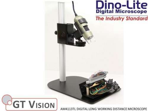 The AM4113TL is a special model with long working distance up to 15 cm at 20x magnification and around 4cm at 90x magnification. The extra working distance makes the TL series an ideal solution for tasks where you need more working distance to the object, for example repair, rework or assembly tasks.