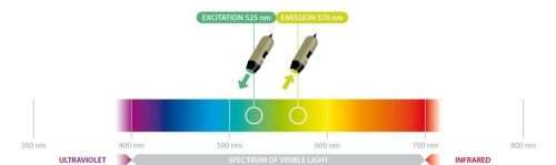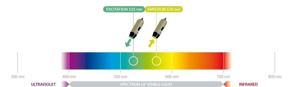 - Optimized for viewing fluorescent objects using 525 nm LED light source