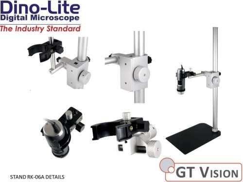 The Dino-Lite RK-06A stand is a sturdy and stable mid-range stand solution that can be used with all Dino-Lite digital microscopes. It is constructed of stainless steel and lightweight aluminum and offers precise fine-focus adjustment as well as a quick vertical release function.