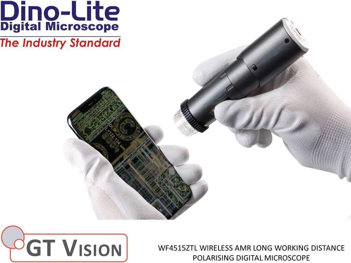 Dino-Lite WF4515ZTLย Portableย Digitalย Wireless AMR Polarising LWD Microscope 10-140X Magnification 1.3MP.