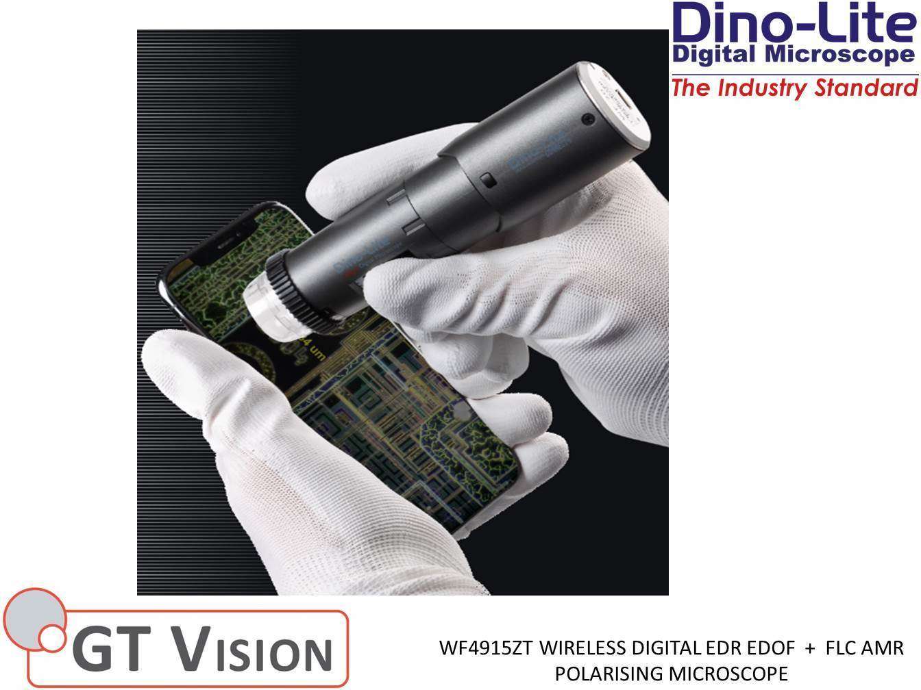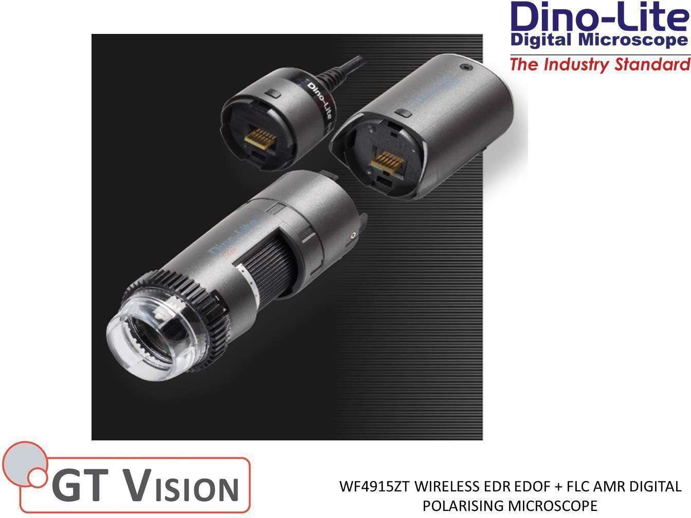 Dino-Lite WF4915ZTย Portableย Digitalย Wireless EDR/EDOF + AMR/FLC Polarising Microscope 20-220X Magnification 1.3MP.