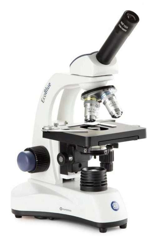 Euromex EcoBlue monocular microscope with 4/10/S40/S100x objectives and mechanical stage