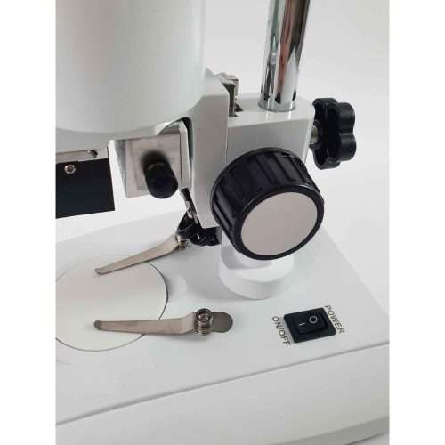 • The binocular head is mounted on the focus mechanism which, in turn is mounted on a vertical pillar. The head can be moved up the pillar to accommodate larger specimens.