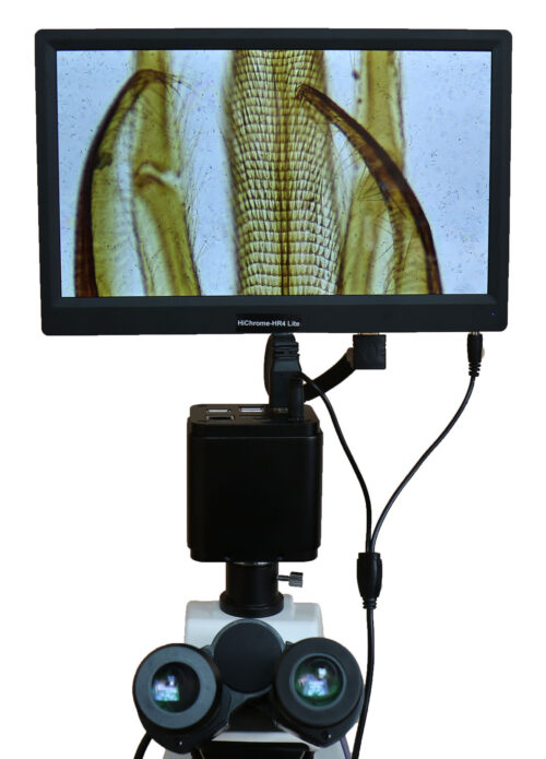 The HiChrome-HR4 has 4k resolution, and has high sensitivity, wide dynamic range and very good colour reproduction . It is an amazingly versatile camera as it can output an image to a PC, an external HDMI screen, and/or by wifi to a phone or tablet! The GX camera is available with a built in screen for educational and presentation applications.