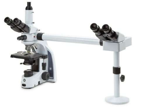 • Large mechanical stage, ergonomic coaxial coarse/fine focus, Abbe condenser on rack & pinion, large stable stand