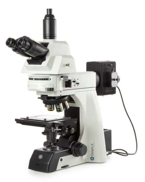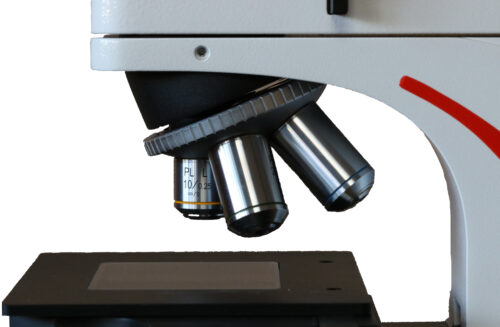 - A full set of high quality plan achromatic materials objectives on a modern reversed quintuple objective turret.