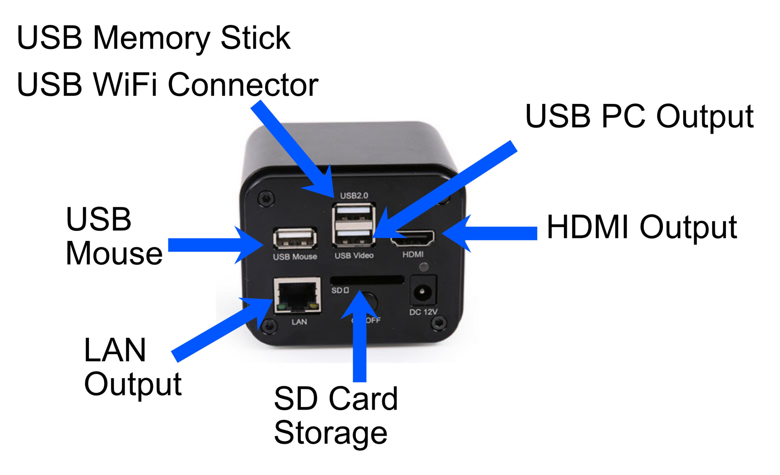 - Camera port (requires the relevant camera adapter for attaching a camera – see the accessories tab and please enquire if you require assistance in finding the most suitable adapter/camera combination).