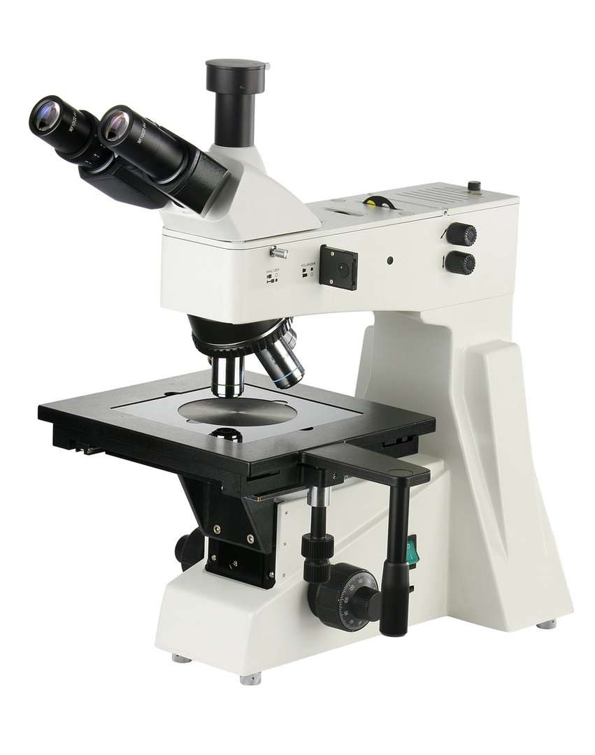 A large specimen capacity, top quality materialsย microscope suitable for viewing silicon wafers, assembliesย and standard metallurgical reflective specimens.ย It is equipped with infinity optics with darkfield / brightfieldย incident (reflected) illumination. It also has a trinocularย head ready for the attachment of a digital camera.ย This microscope includes a full set of high quality infinity BDย plan achromatic materials objectives on a rotatableย objective turret.