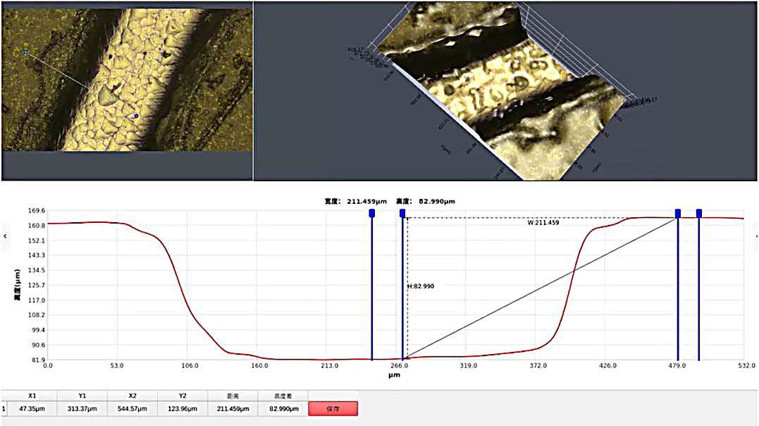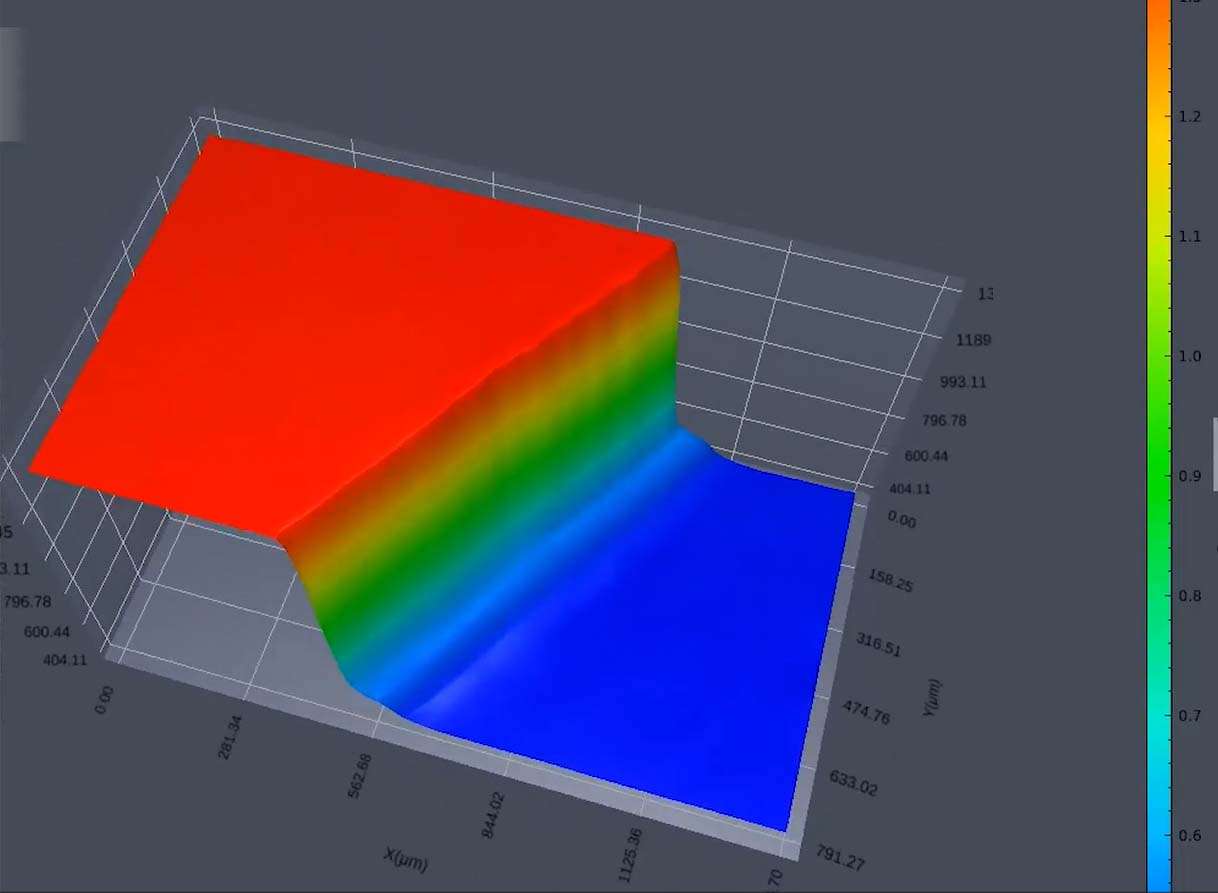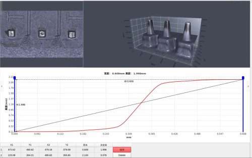 The camera provides a wealth of 3D tools to easily measure any position of a 3D sample and record data in real time. With a materials microscope using a 10x objective, the measurement accuracy is ยฑ2 ยตm.