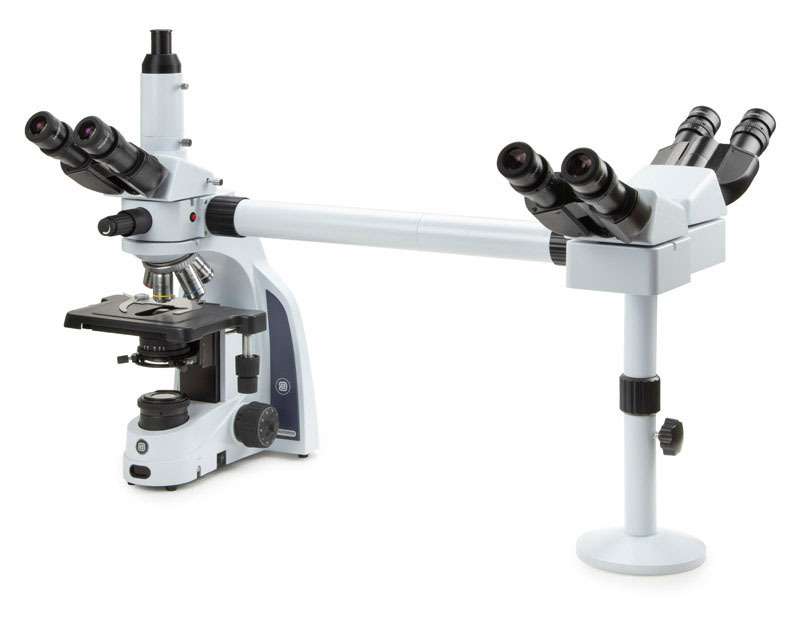 Trinocular version with 2 extra binocular heads. Siedentopf 30ยฐ inclined tubes.