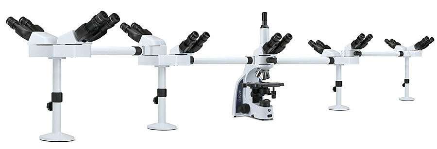Trinocular version with 8 extra binocular heads. Siedentopf 30ยฐ inclined tubes.