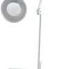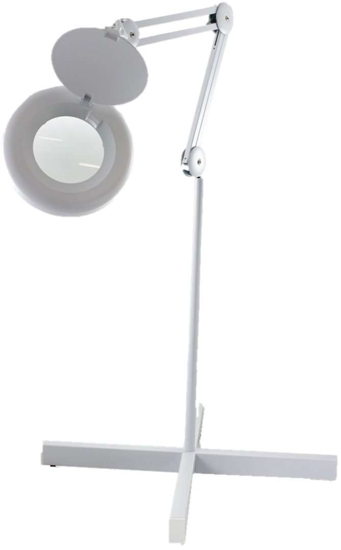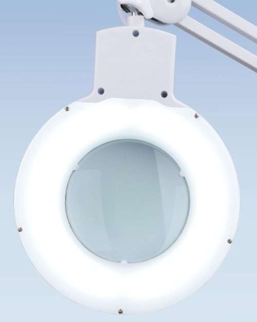 Outstandingly good value, top quality, Cambridge Optics made Illuminated magnifier. ย  Long reach, professional grade, LED Illuminated floor stand magnifier with balanced enclosed spring metal arm,ย good quality table G-clamp. ย Large 12.7cm diameter glass lens 8 diopter (3X). Arm and Head: 226x56x1185mm Floor Stand: 695x245x155mm. ย Bright White 60 LED Illumination with diffuser for comfortable, glare free observation. Tiltable and rotable head includes a very useful hinged cover. Lower arm safely restrictedย to comply with safety regulations and CE.ย Colour – white. Suitable for domestic. industrial, medical and professional use. ย Full manufacturer’s warranty. ย Plugs into mains with 12V internal voltage so very safe and extremely economical to use.