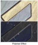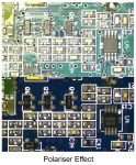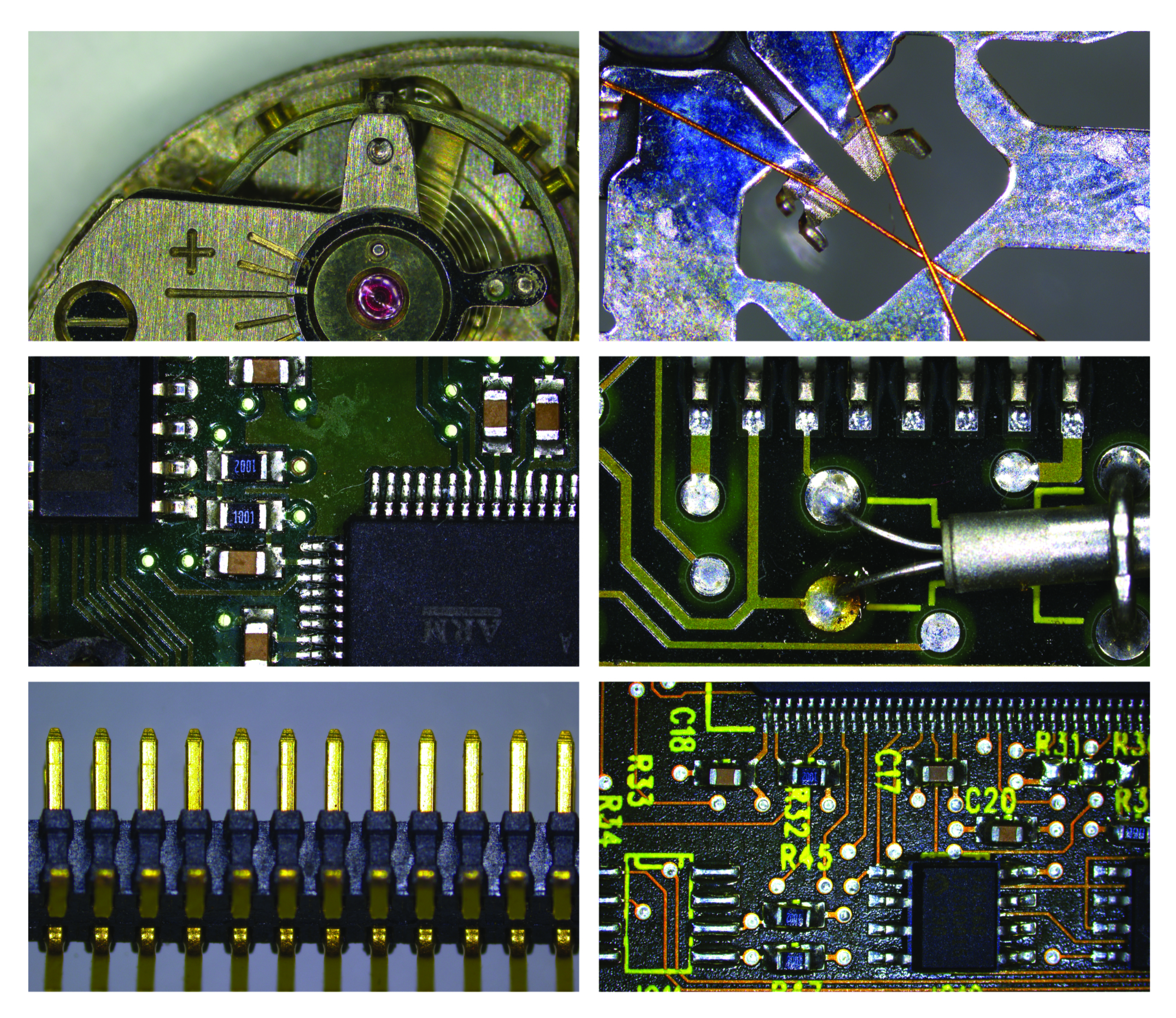 Image simulation showing a printed circuit board sample without and with the FusionOptics effect, perceived when looking through the eyepieces