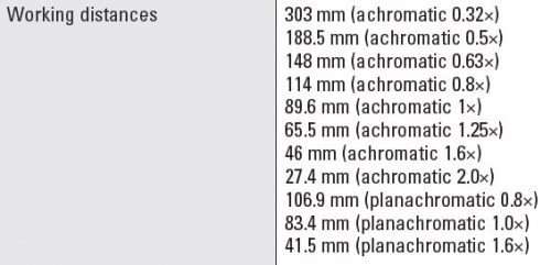 • Parfocally matched optical system: The sharpness remains constant when the magnification is changed