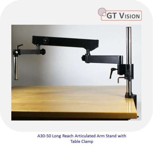 Package includes a Precision focussing ring (model 4673) plus a Professional quality long reach articulated arm stand with table G-clamp (model A30-50).ย