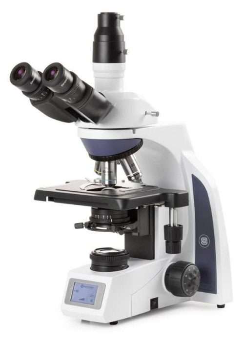Euromex MicroBlue trinocular microscope with 4/10/S40/S100x objectives and mechanical stage