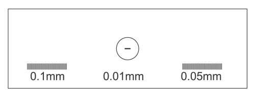 Micrometer Glass Slide for Microscope Calibration 1mm Horizontal Scale 100 divisions -10um intervals. ย Also known as a Stage Graticule Slide. ย Suitable for use with transmitted light microscopes. ย Design may include circle around the scale (varies from batch to batch).