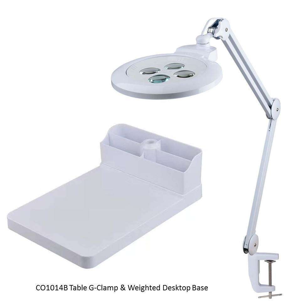 - This magnifier is provided with aย aย G-Clamp (see also our weighted base version CO1014B and our Floor stand versions CO1014GF) .
