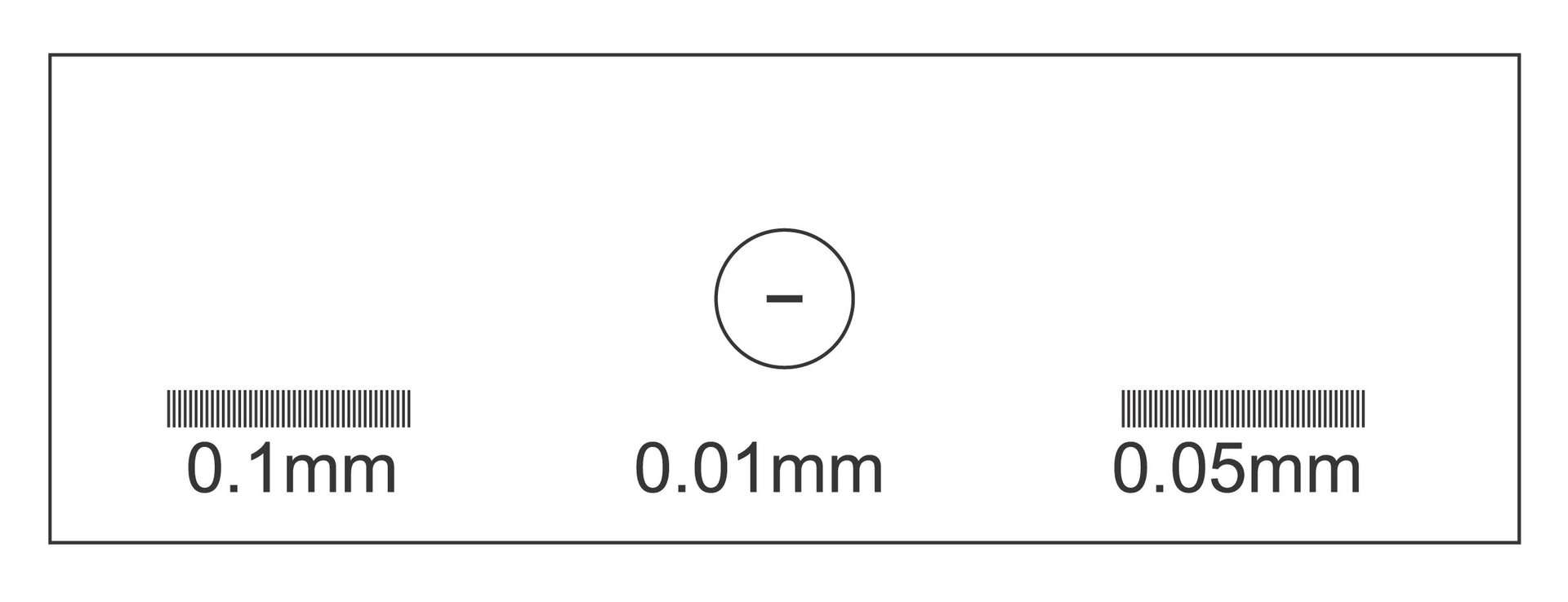 Also known as a Stage Graticule Slide. ย Suitable for use with transmitted light microscopes. ย Design may include circle around the scale (varies from batch to batch).