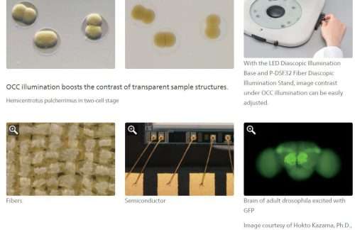 Diascopic illumination stands have been renewed. The slim LED base design provides easy access to specimen and easy operation. As with theย SMZ25ย andย SMZ18, the diascopic illumination base features Nikonโs very own oblique illumination, the OCC illuminator. The built-in feature offers high contrast observation for transparent samples such as oocytes used in theย IVF application.