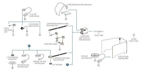 To support a variety of observation methods and applications used for research and inspection, an assortment of accessories, such as illumination units, stands, and eyepiece tubes, are available. By incorporating a โFly Eye Lensโ with the Epi-Fluorescence illuminator, uniform brightness over the entire field of view is realized, which helps in observing specimen that needs a wide magnification range. Nikon also offers severalย digital camerasideally suited forย different stereo microscope applications.