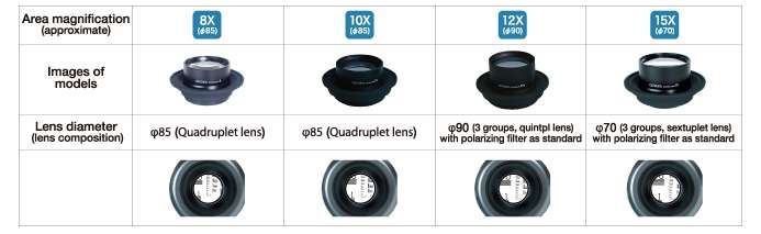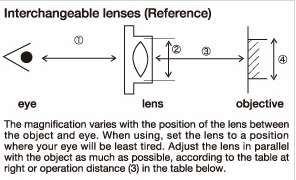 Lens ID and Mag Eye Point (mm) Lens Diameter (mm) Working Distanceย (mm) Field Of View Diamter ย (mm) Weight (g) Multicoated