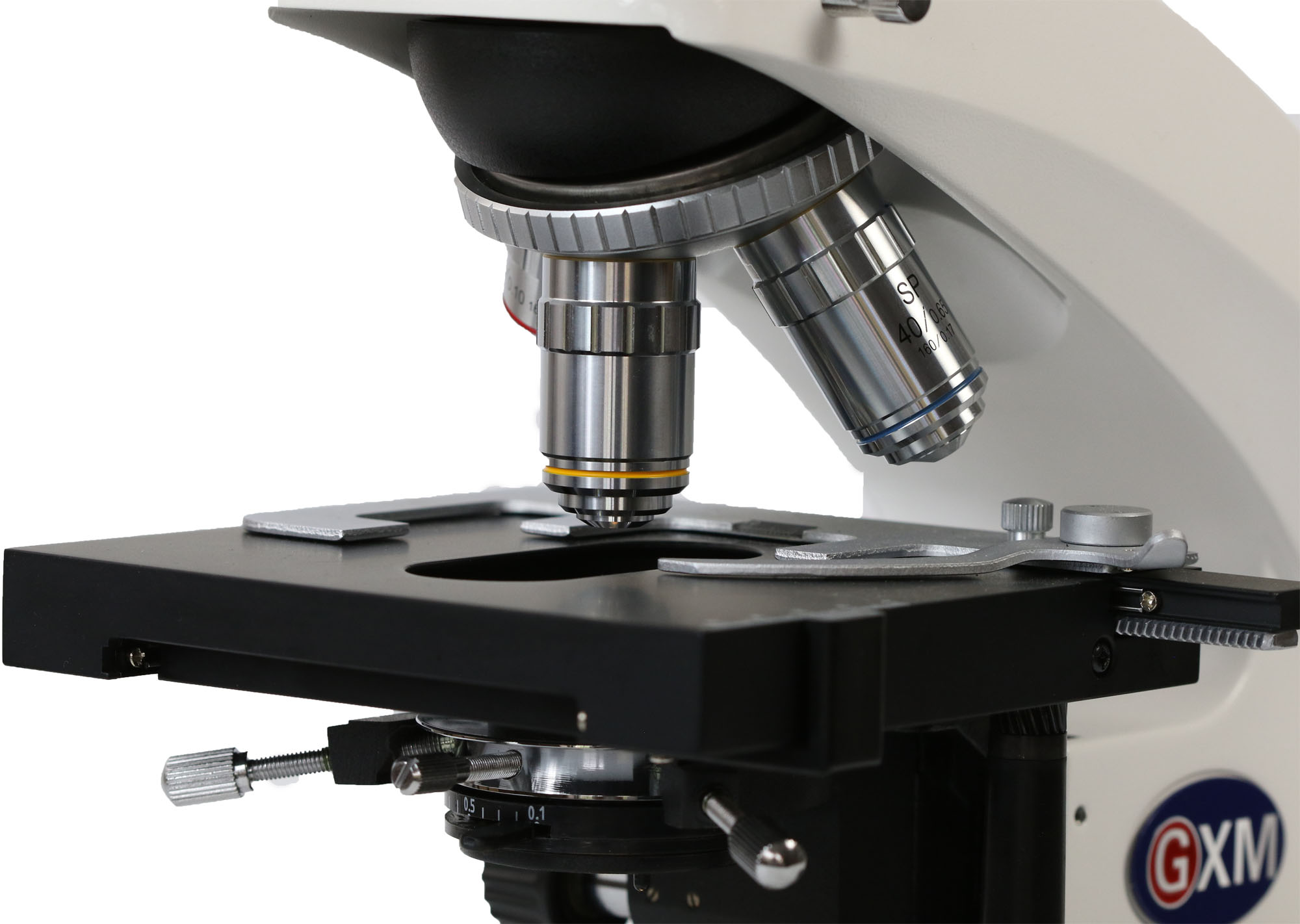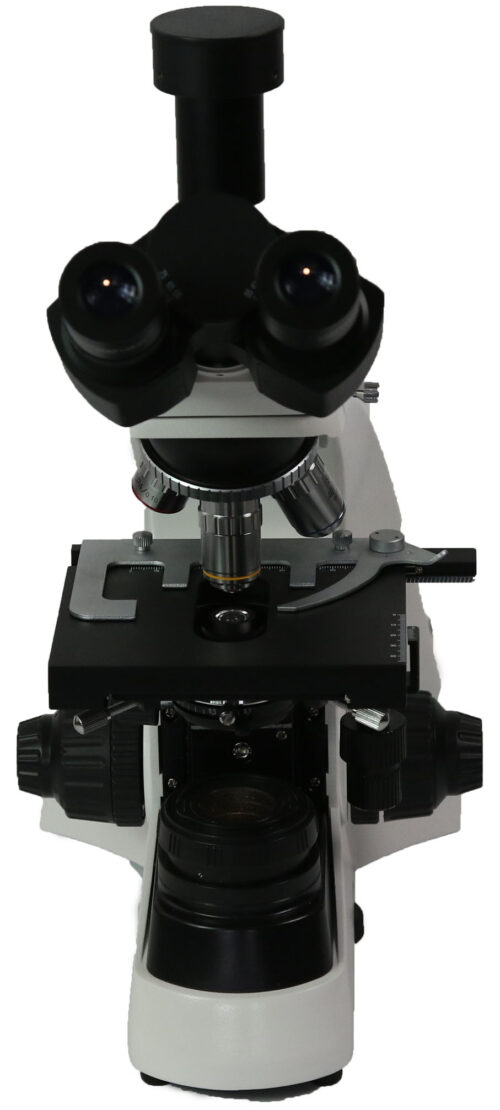 • This model has a quadruple nosepiece with 4x, 10x, 40x and 100x oil objectives (further magnifications are achievable with the optional objective lenses and eyepieces)